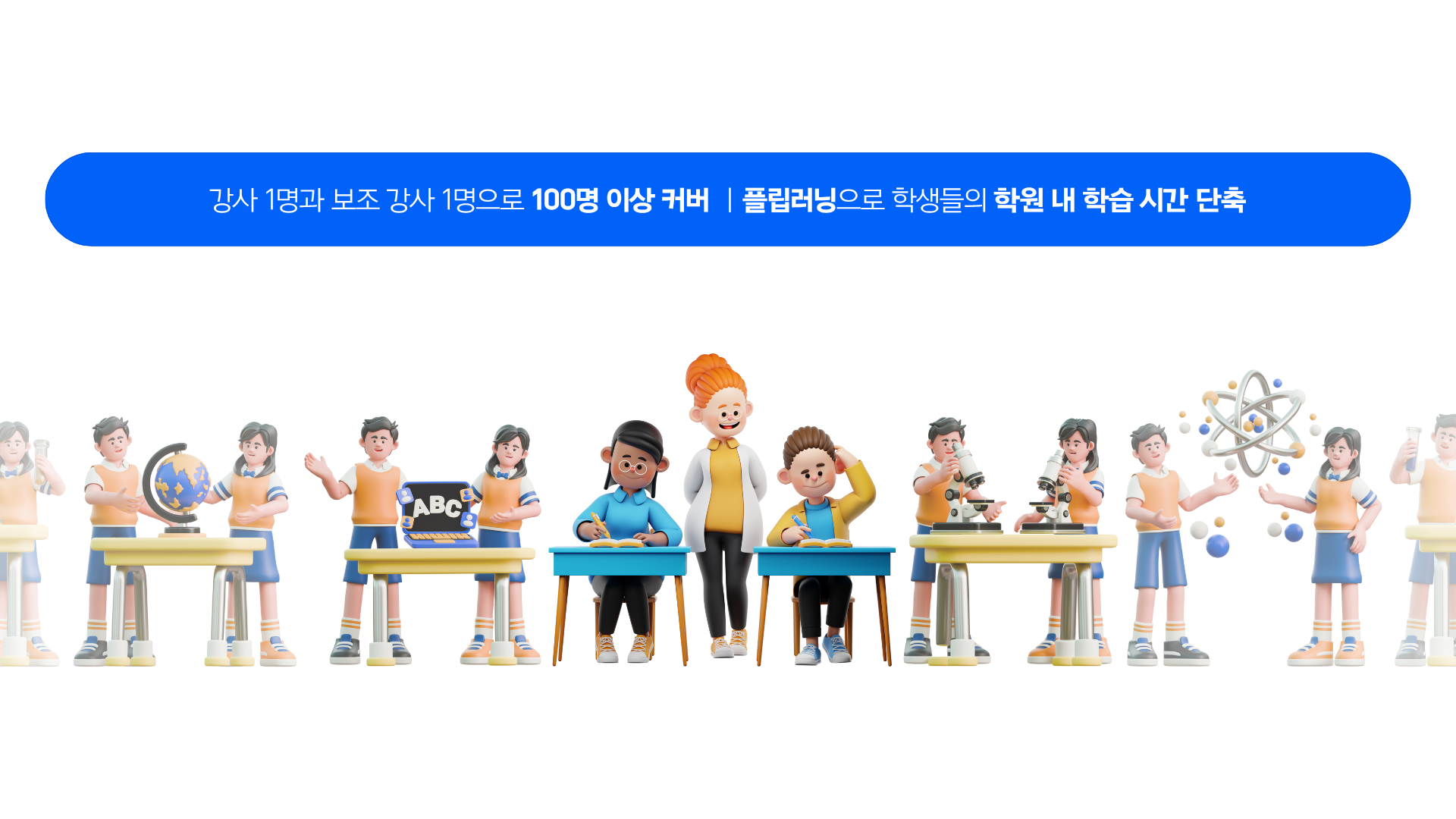 플립 러닝으로 예습 후 5無(무학년, 무레벨, 무정원, 무시간, 무교재)에 100% 개인별 맞춤 수업