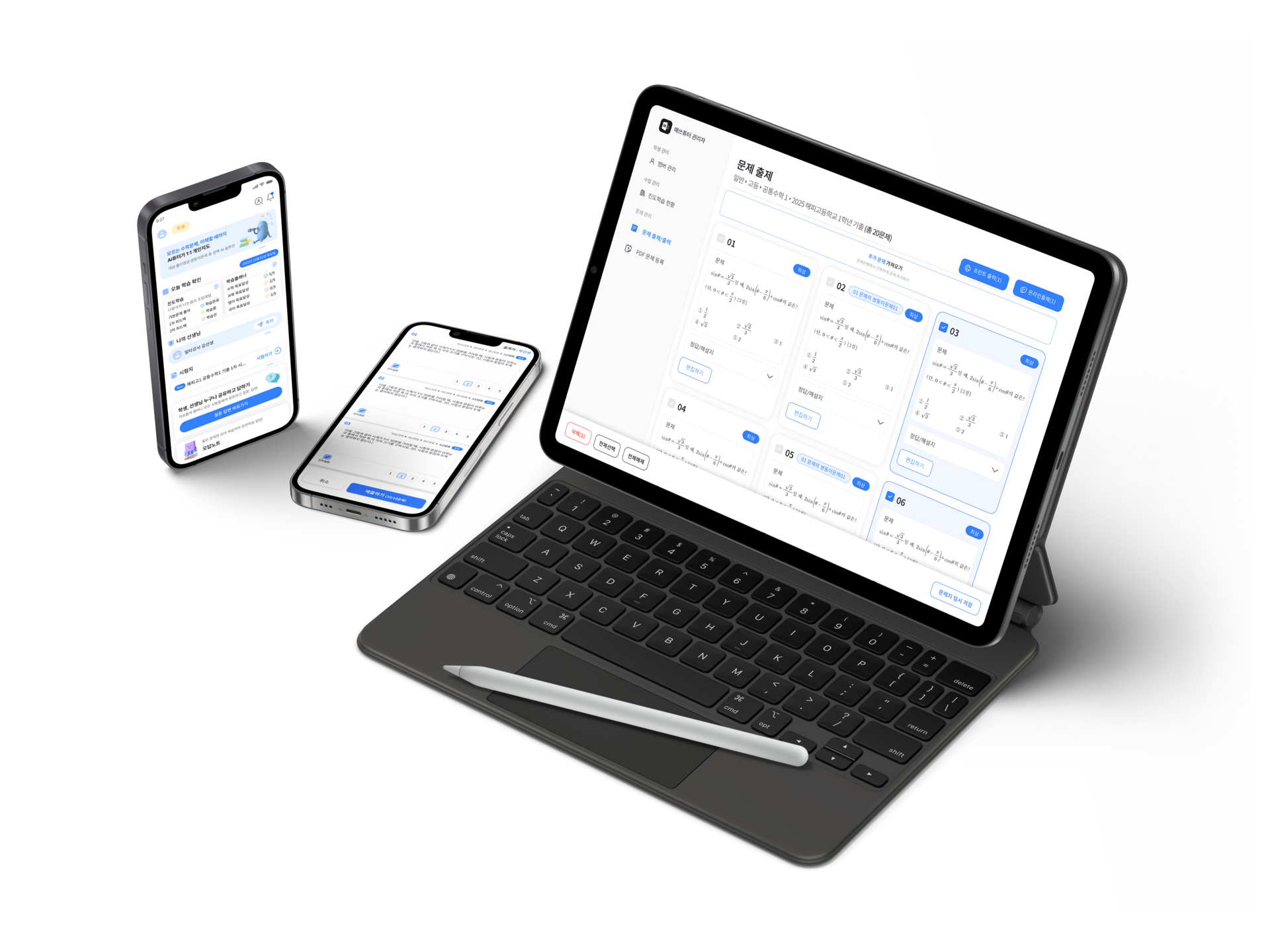 파일만 업로드하면 단원과 난이도 분류내 문제지에 자동 저장, 문제 출제 & 프린트
