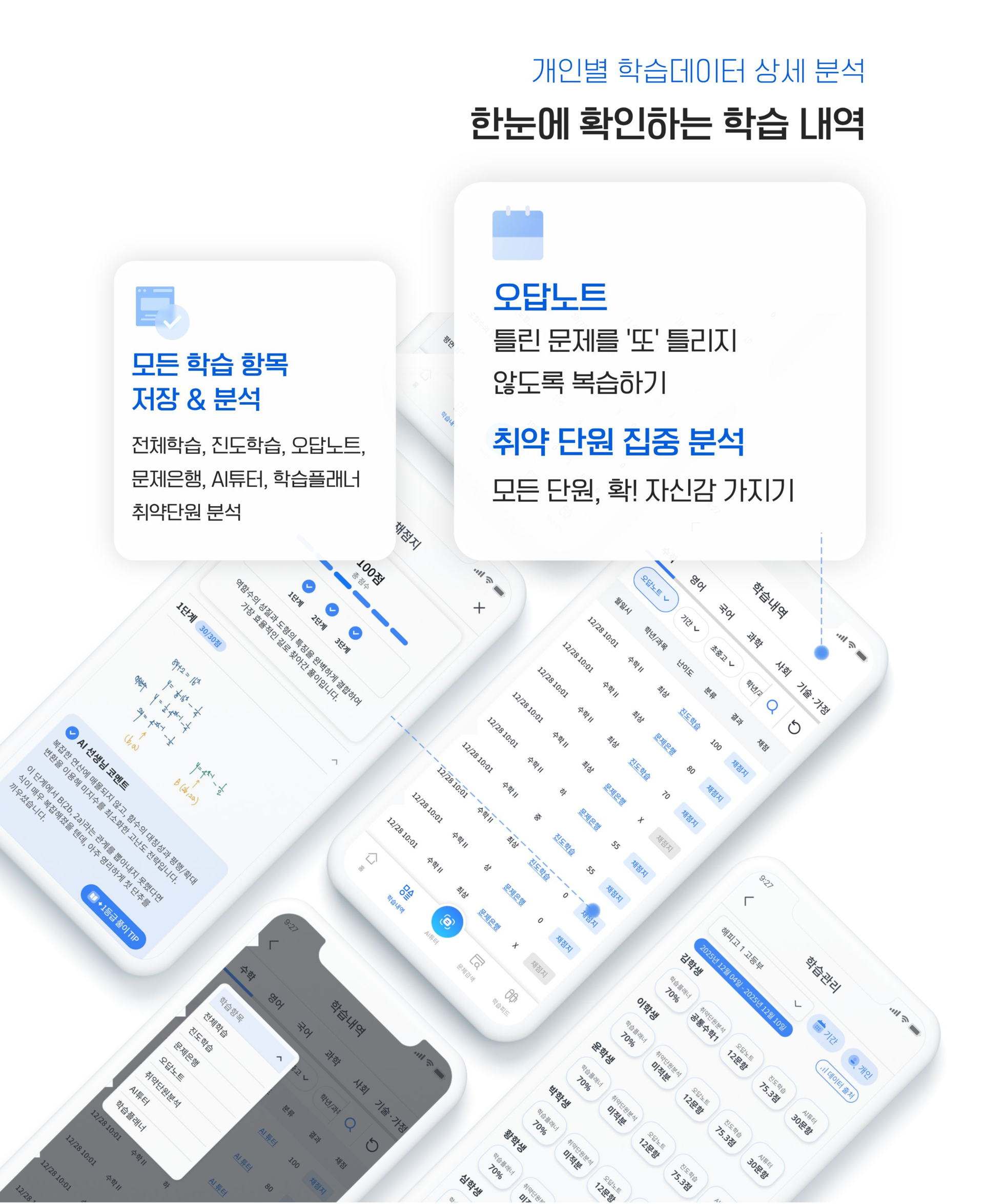 오답노트부터 취약단원 분석까지체계적인 실시간 학습 피드백 & 관리