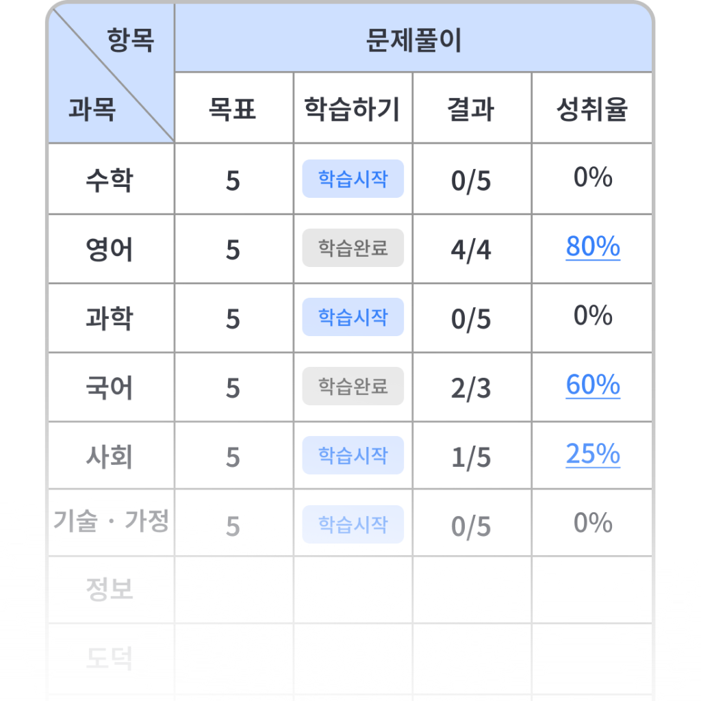 전 과목 학습 목표 설정
